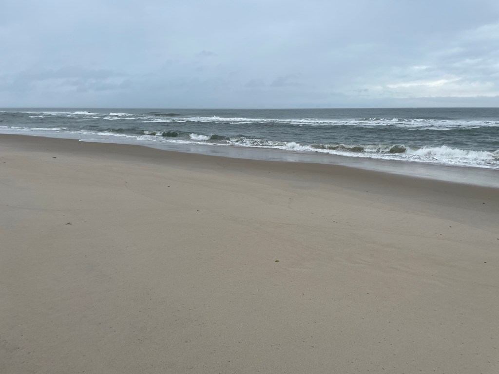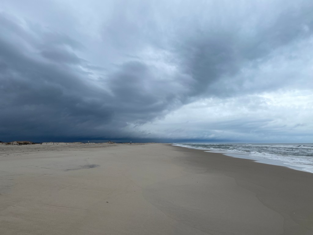 To walk on a beautiful wild beach in utter solitude is a special experience – one that is hard to rival. Having grown up in the Rocky Mountains, I can say that it is akin to summiting a major mountain and standing at the top all alone, observing directly one’s own smallness in the greater natural world. I didn’t summit a mountain on Assateague, but the raw power of the ocean running into the land (as well as the torrential rain and beating wind that ground freezing wet sand into my body afterwards – did I mention I was really glad I brought that rain gear?) impressed me equally.