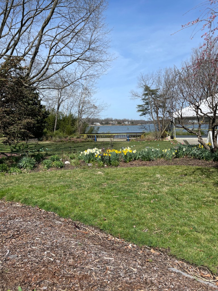 I also had the pleasure of meeting a good friend at Historic London Town and Gardens (in Edgewater) this week. London Town is a very cool place, with beautiful gardens and living history actors and lots to learn about colonial Maryland. My kids love coming here for their Learning at London Town program, so I will write more about it in a future post. But I do want to give it a plug now because of the beauty it presented this time of year in early spring. It’s the perfect weekend spot for watching the osprey soar over the Bay and the camellias (and many other flowers) bloom.